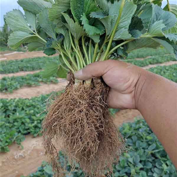 章姬草莓苗生長勢強,株型開張,繁殖力中等,中抗炭疽病和白粉病,豐產性好。現蕾期至始果期株態直立,始果期開始株態開張。現蕾期功能葉6-8片,株高12厘米,葉梗頂部彎曲,小葉呈筒狀,根狀莖粗2.5厘米,花序2個;盛果期功能葉14-16片,株高28厘米,根狀莖粗5厘米,花序4個。章姬為暖地型大棚促成栽培的新型優良品種,在大棚促成栽培時,果實可在11月中旬采果上市。早上市可以賣個好價錢。
